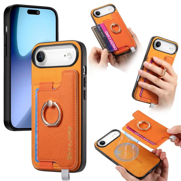 Funda de cuero con anillo y tarjetero para iPhone Air Retro Magsafe Cross (amarilla)