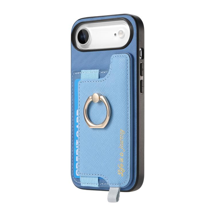 Funda de cuero con anillo y tarjetero para iPhone Air Retro Magsafe Cross (azul)