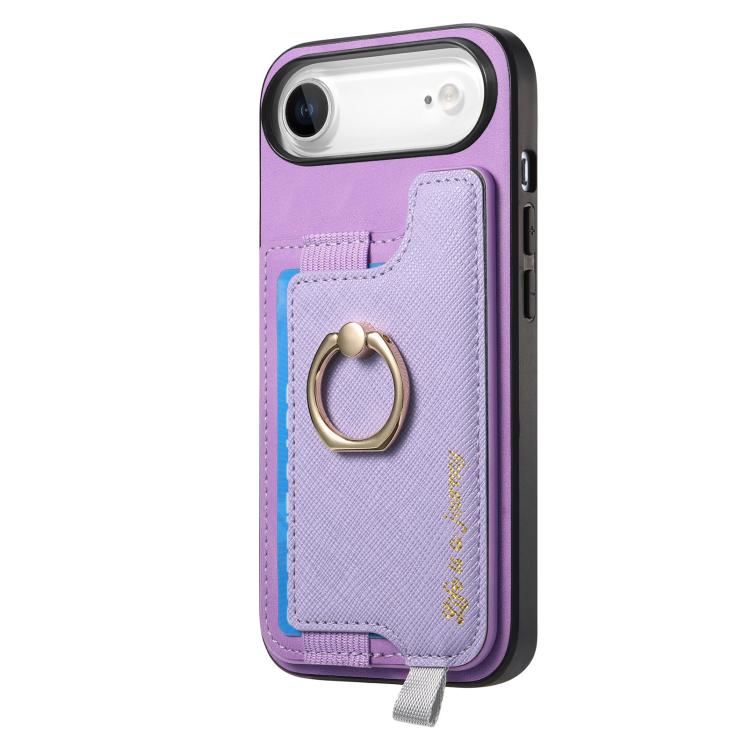 Funda de cuero con anillo y tarjetero para iPhone Air Retro Magsafe Cross (morado)
