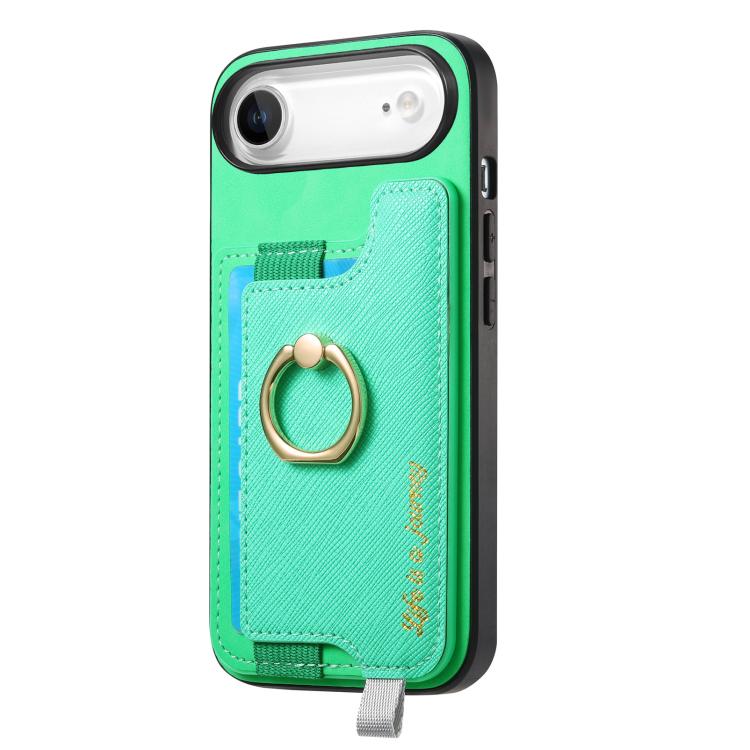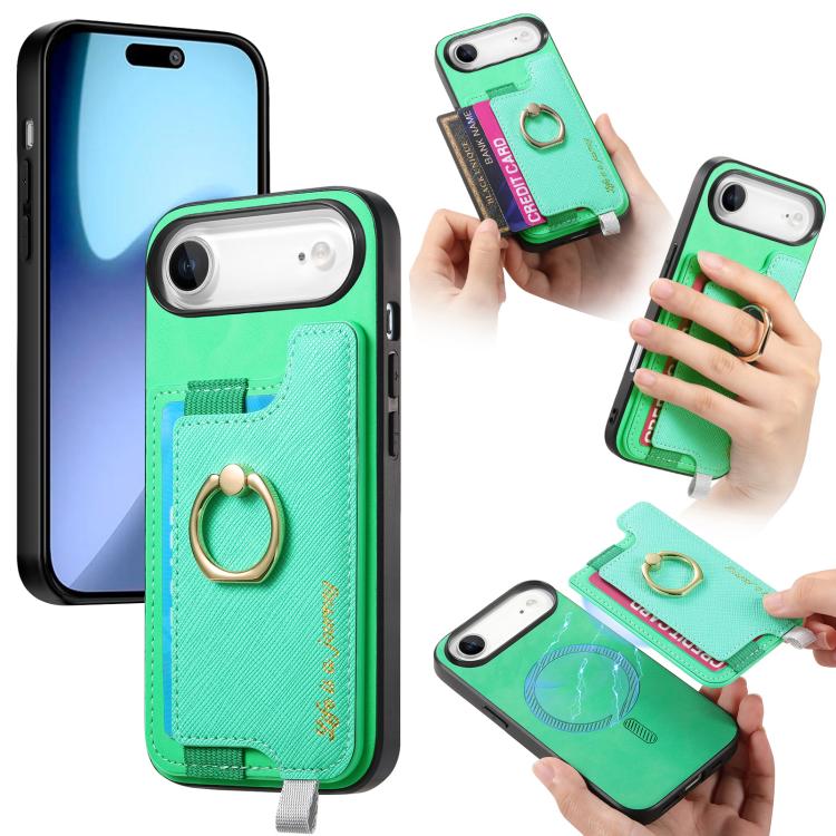 Funda de cuero con anillo y tarjetero para iPhone Air Retro Magsafe Cross (verde)