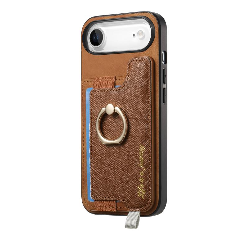 Funda de cuero con anillo y tarjetero para iPhone Air Retro Magsafe Cross (marrón)