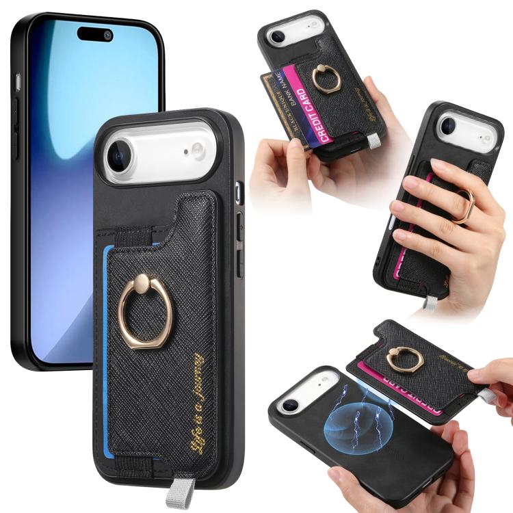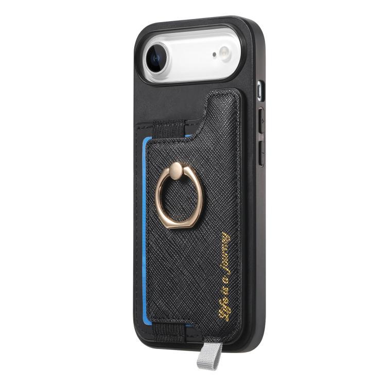 Funda de cuero con anillo y tarjetero para iPhone Air Retro Magsafe Cross (negra)