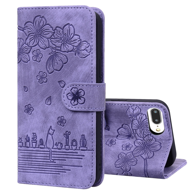 Estuche de Cuero En Relieve Dibujos Animados Sakura Cat para iPhone 7 Plus / 8 Plus (Púrpura)