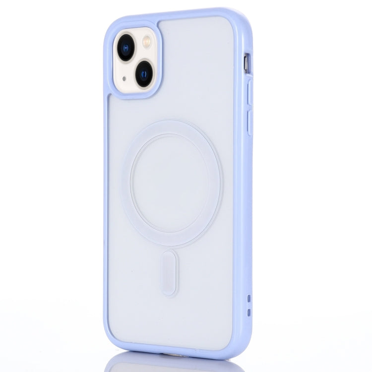 Estuche de teléfono 2 En 1 para iPhone 14 magnético Transparente con marco colorido (Azul Claro)