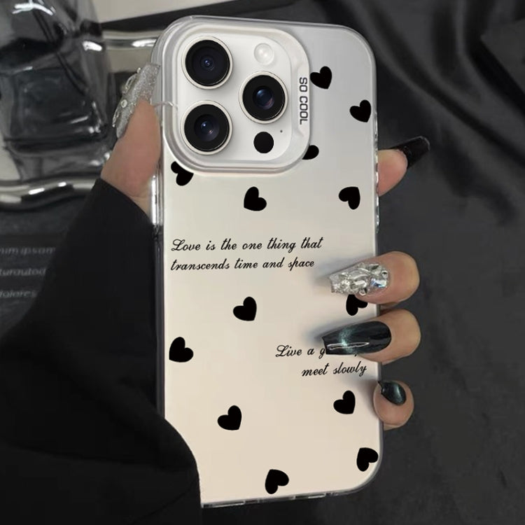 Estuche híbrido para iPhone 13 Pro TPU con pintura plateada para PC (Corazones de amor blancos)