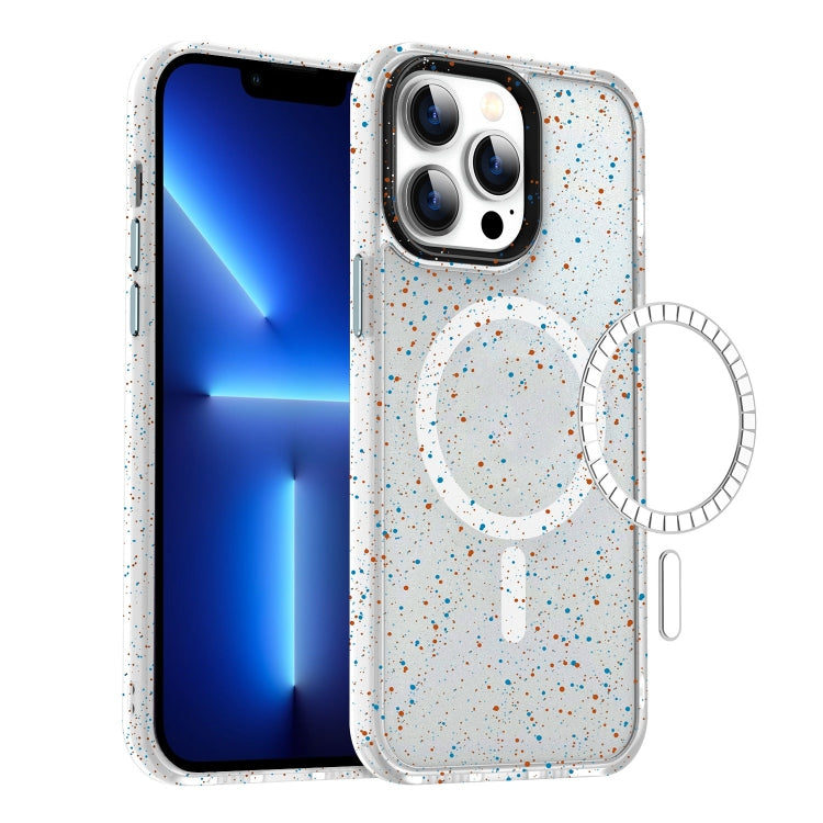 Estuche híbrido para iPhone 13 Pro TPU Magsafe PC con salpicaduras de tinta colorida (Blanco)