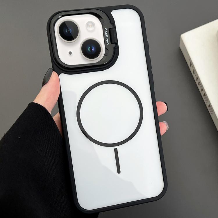 Estuche magnético MagSafe para iPhone 14 Plus con soporte para lente de PC (negro)