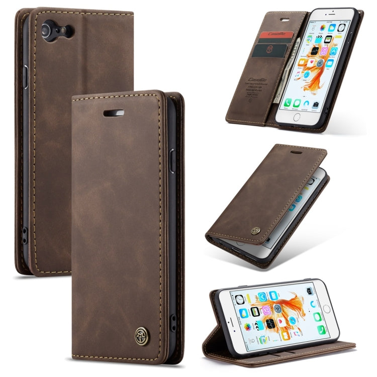Estuche Multifuncional Caseme-013 para iPhone 6 / 6S Cuero Abatible Horizontal Retro Esmerilado (Café)