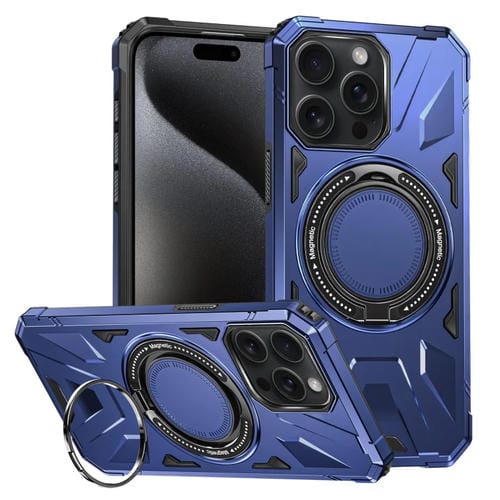 Estuche para iPhone 15 Pro Magsafe Magnético a Prueba de Golpes con Soporte para Anillo (Azul Marino)