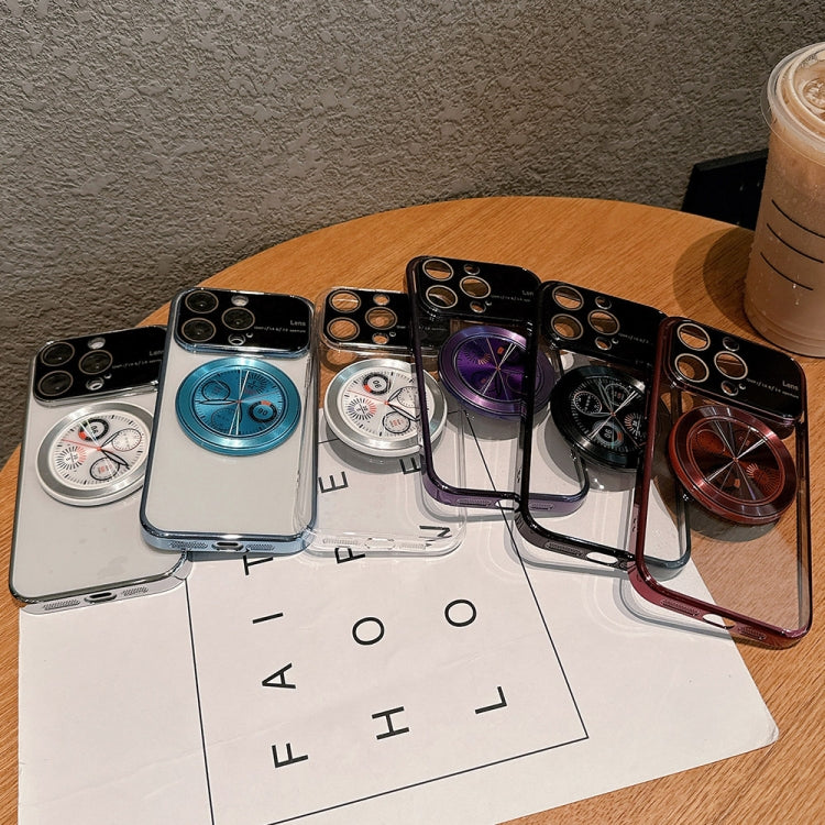 Caja de teléfono para iPhone 11 Pro Max PC con soporte ventana grande galvanizada (Púrpura)