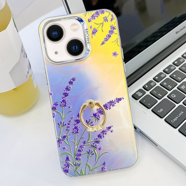Caja de teléfono TPU para iPhone 13 con soporte de anillo flor láser galvanoplastia (Lavanda)