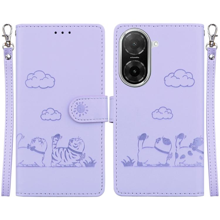 Funda de cuero RFID con diseño de gatos para Redmi A5 4G (171,7 mm) (morado)
