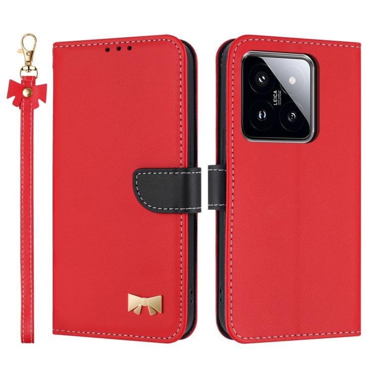 Funda de cuero con lazo metálico y correa para la mano para Xiaomi 14 (roja)