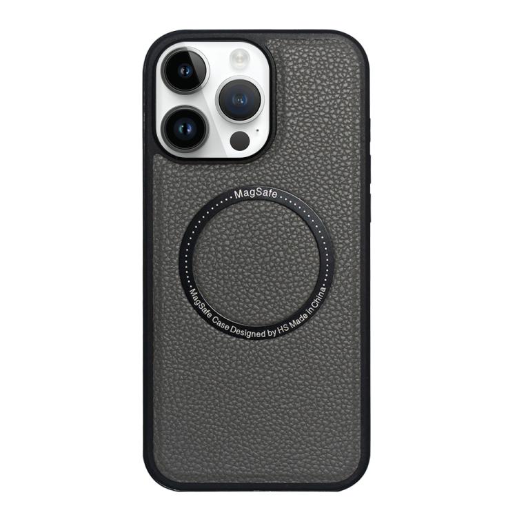 Funda trasera MagSafe de PU con textura de lichi para iPhone 15 Pro (gris)