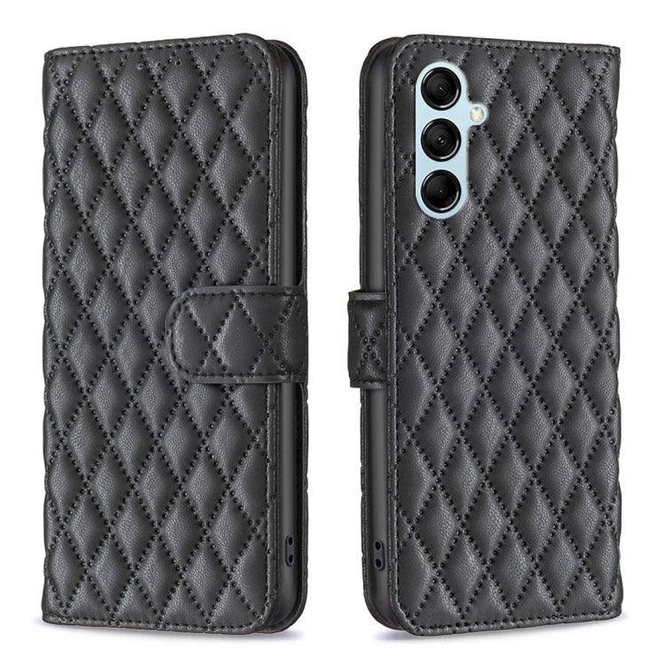 Para Samsung Galaxy M14 5G Diamond Lattice Wallet Funda de cuero con tapa para teléfono (Negro)