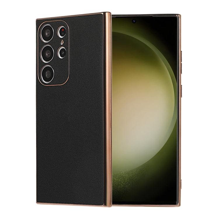Para Samsung Galaxy S23 Ultra 5G de cuero genuino Xiaoya Series Nano Plating Phone Case (Negro)