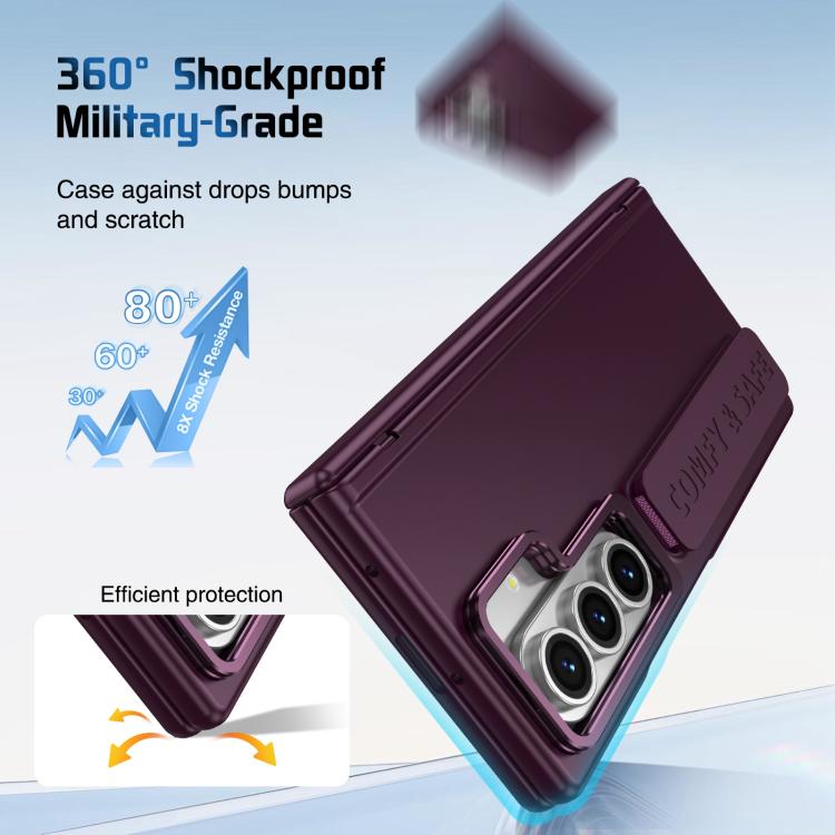 Funda para teléfono con soporte para lente integrada y correa para Samsung Galaxy Z Fold7 (rojo vino)