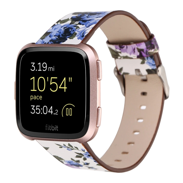 Banda de Reloj para Fitbit Versa 1/2 con Patrón de Flores (Azul Blanco)