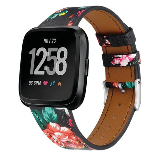 Correa de Cuero para Fitbit Versa 2 Apertura Media (Flores de Ceniza Negra)