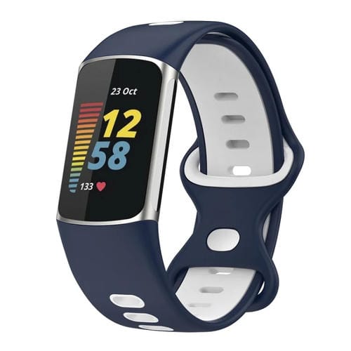 Correa de Silicona para Fitbit Charge 6 de Dos Colores (Azul Medianoche, Blanco)