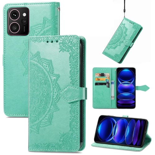 Funda de Cuero con Relieve Flor de Mandala para Teléfono HMD Skyline (Verde)