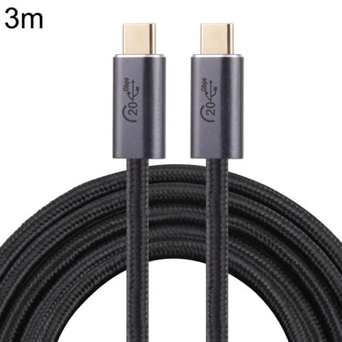 Cable de Datos USB 3.2 Tipo C Macho a Tipo C Macho 20Gbps Trenzado 3M (Negro)