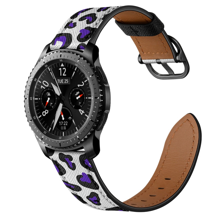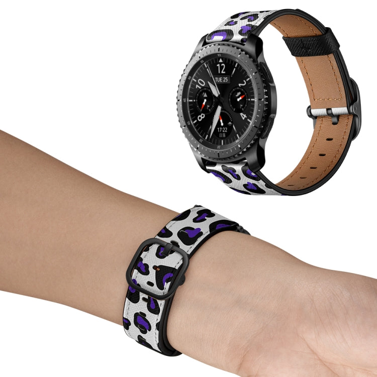 22 mm para Xiaomi Haylou RT RS3 LS04 / LS05S Band de reloj de cuero impresa universal (leopardo púrpura)