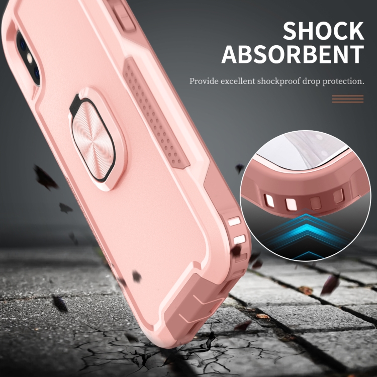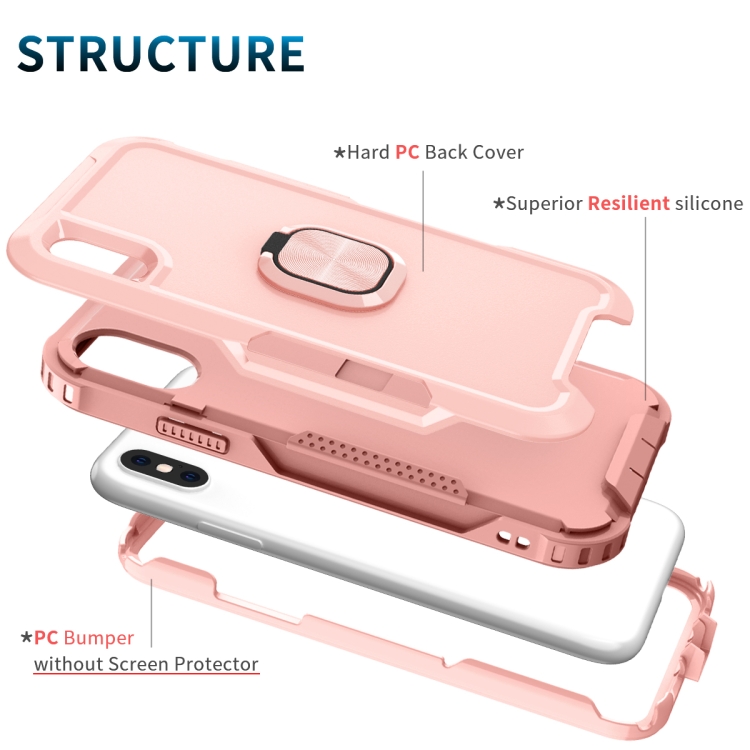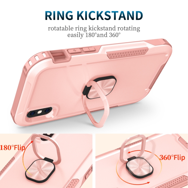 Caja de teléfono 3 en 1 TPU + PC con soporte de anillo para iPhone Xs Max (Rosa)