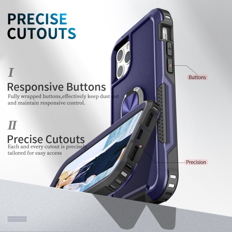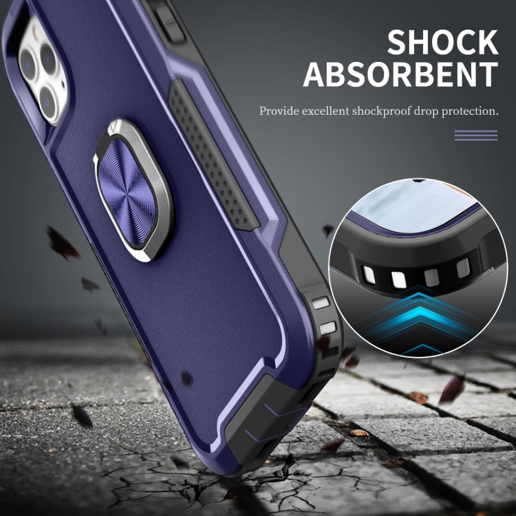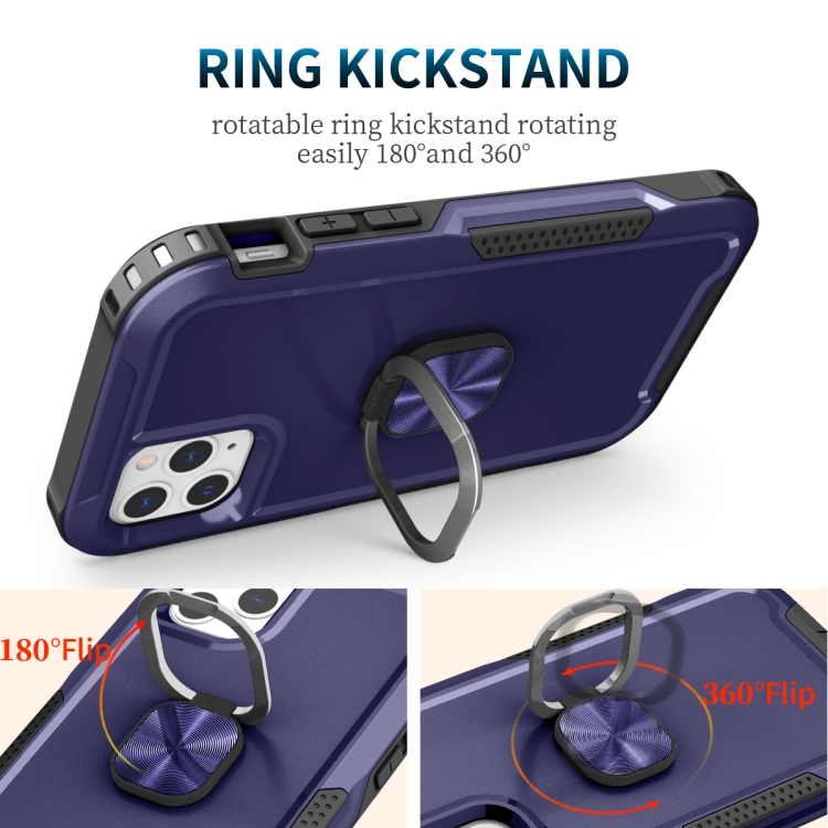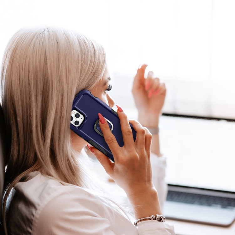 Funda 3 en 1 PC TPU con Soporte de Anillo para iPhone 11 Pro (Azul Marino)
