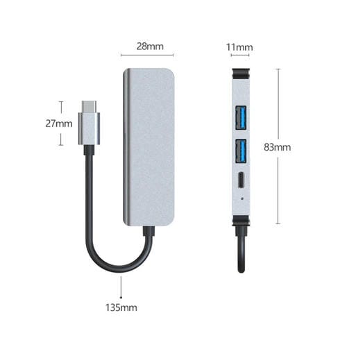 El Hub Docking Station 4 en 1 USB-C es un dispositivo multifuncional diseñado para ampliar la conectividad de equipos con interfaz USB Tipo C. Compatible con una amplia gama de dispositivos, este hub permite la Conexión simultánea de hasta cuatro interfaces, incluyendo un Puerto HDMI 4K para transmisión de video en alta definición a Pantallas grandes, un Puerto USB 3.0, un Puerto USB 2.0 y un Puerto de Carga PD USB-C que soporta protocolo de Carga rápida PD3.0 con una potencia máxima de hasta 87W. Su diseño compacto y Portátil, con una Carcasa de aluminio y Cable de 135 mm de longitud, facilita su transporte y uso en entornos profesionales y personales, proporcionando una solución eficiente para la expansión de Puertos y Carga simultánea.