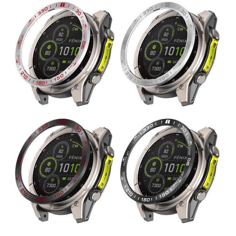 Anillo protector de acero inoxidable para reloj Garmin Tactix 8 Solar de 51 mm (estilo Compete Speed) (negro y blanco)