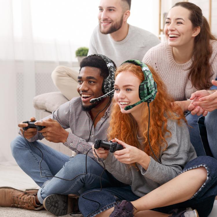 Auriculares supraaurales para juegos KOTION EACH G9000 Pro con micrófono, longitud del cable: aprox. 2,1 m (verde camuflaje)