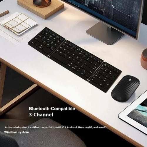 1. Diseño plegable: Teclado plegable triple con cierre magnético para un cierre seguro y portabilidad compacta.
