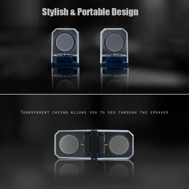 1.Diseño elegante y portátil: la carcasa transparente le permite ver a través del altavoz.
