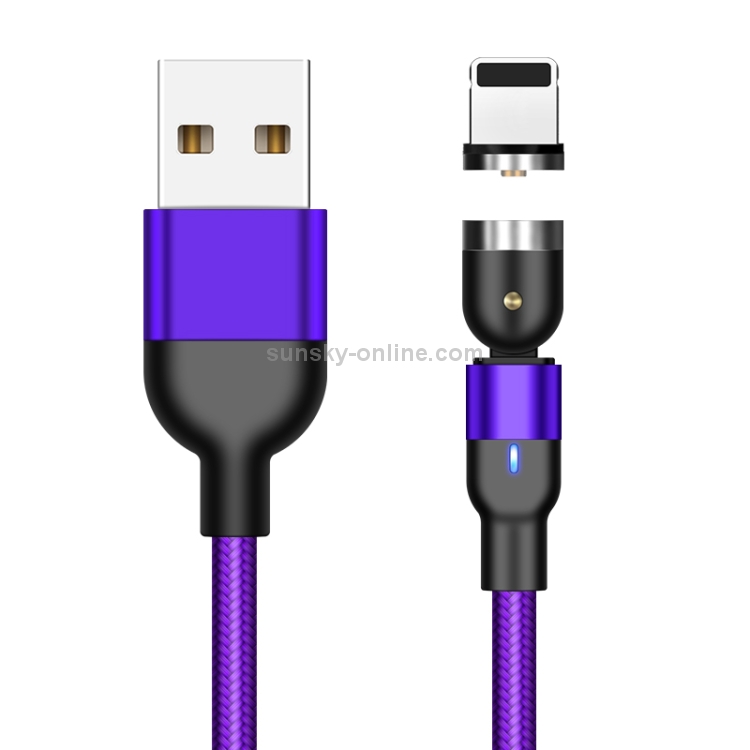 Cable de carga magnético giratorio trenzado 1 m 2A USB A 8 pines (Púrpura)