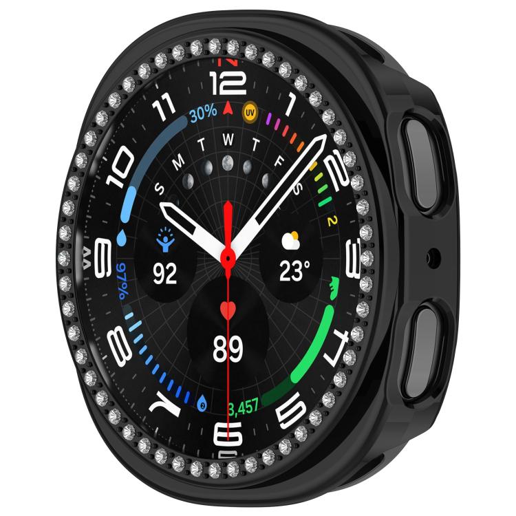 Caja de PC hueca con media cobertura de diamante de una sola fila para Samsung Galaxy Watch 8 de 40 mm (negro galvanizado)