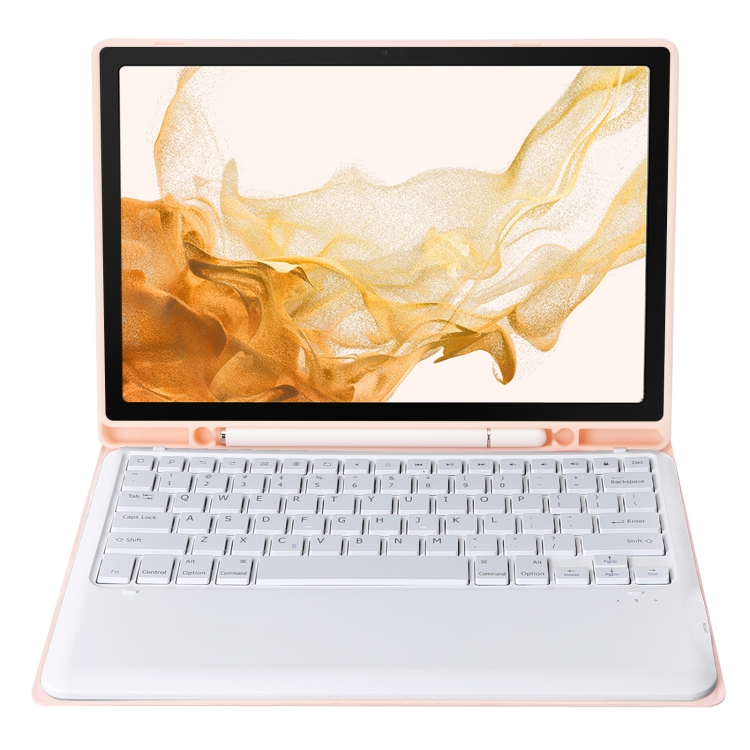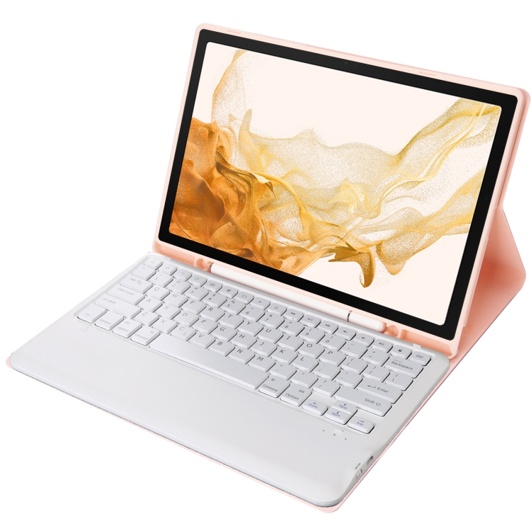 - 1x Case de Teclado Bluetooth Despachable A800B Candy Color con Ranura para Bolígrafo para Samsung Galaxy Tab S8+ / S7+ / S7 FE (Rosa)