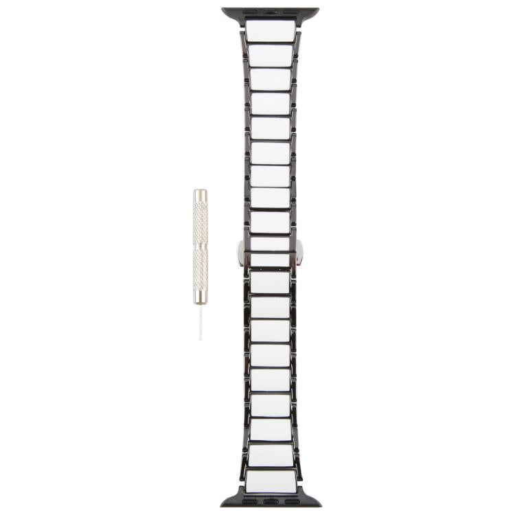 Correa de acero de 18 mm con tres cuentas de cerámica para Apple Watch de 46 mm, 49 mm, 45 mm y 44 mm (negro y blanco)