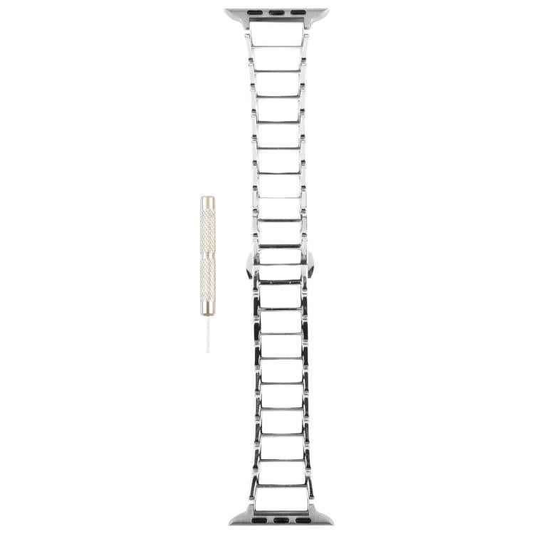 Correa de acero de 18 mm con tres cuentas de cerámica para Apple Watch de 46 mm, 49 mm, 45 mm y 44 mm (plata y blanca)