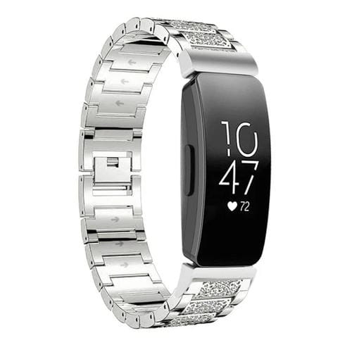 Correa de acero inoxidable con diamantes de imitación para Fitbit Inspire 2/Ace 3 de 14 mm (plata)