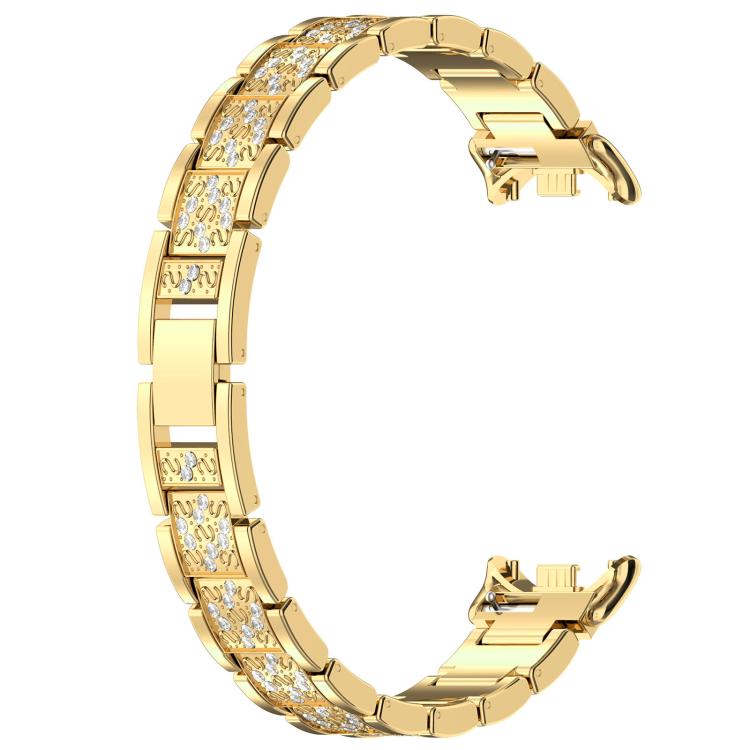 Correa de acero inoxidable con diamantes de imitación xDfind de 14 mm para Xiaomi Smart Band 10/9/8/NFC (dorada)
