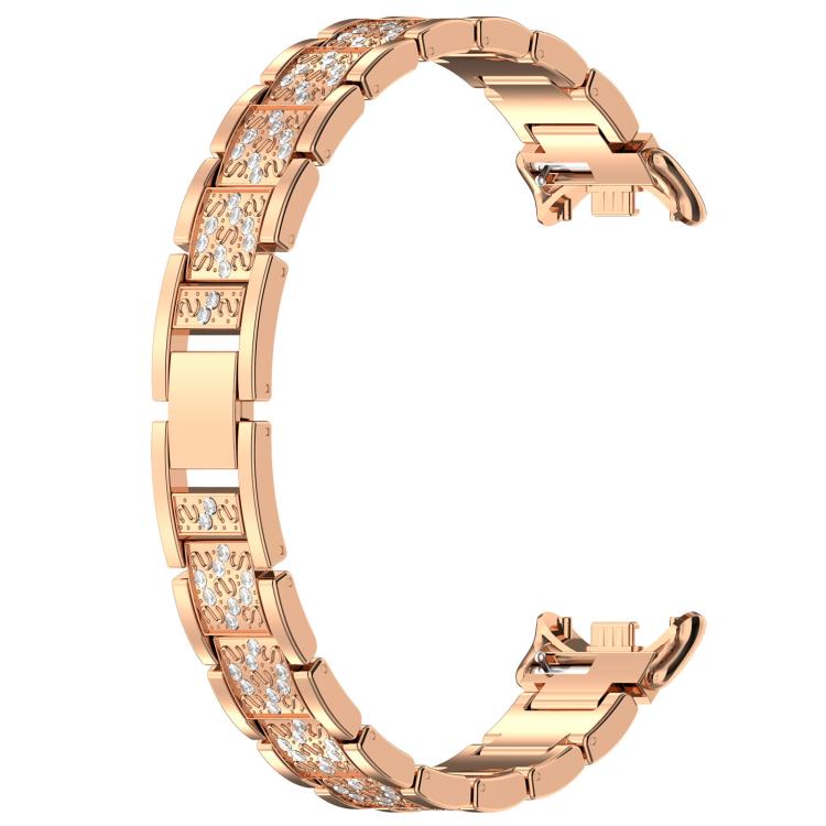 Correa de acero inoxidable con diamantes de imitación xDfind de 14 mm para Xiaomi Smart Band 10/9/8/NFC (oro rosa)