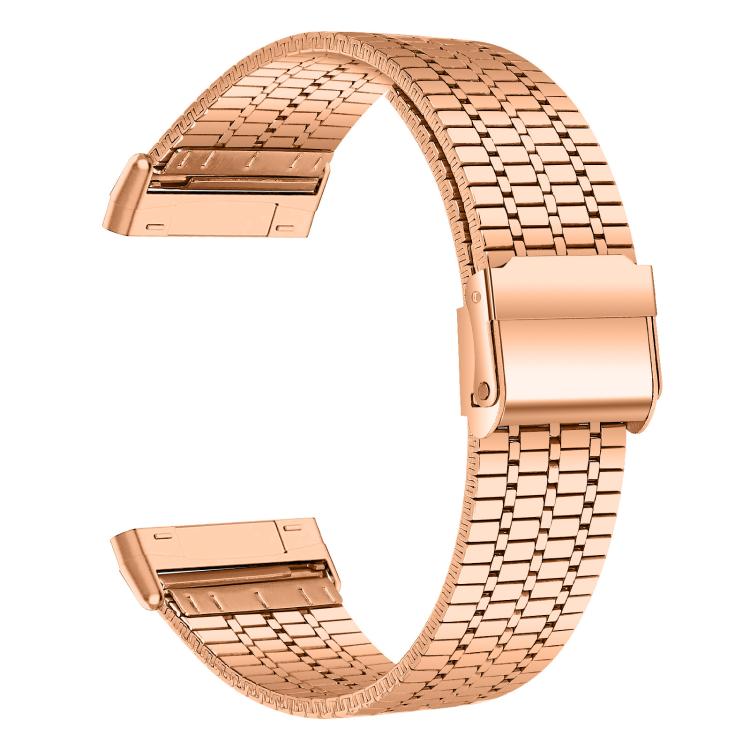 Correa de acero inoxidable con hebilla de siete cuentas para Fitbit Versa 4/3/Sense 2/Sense xDfind (oro rosa)