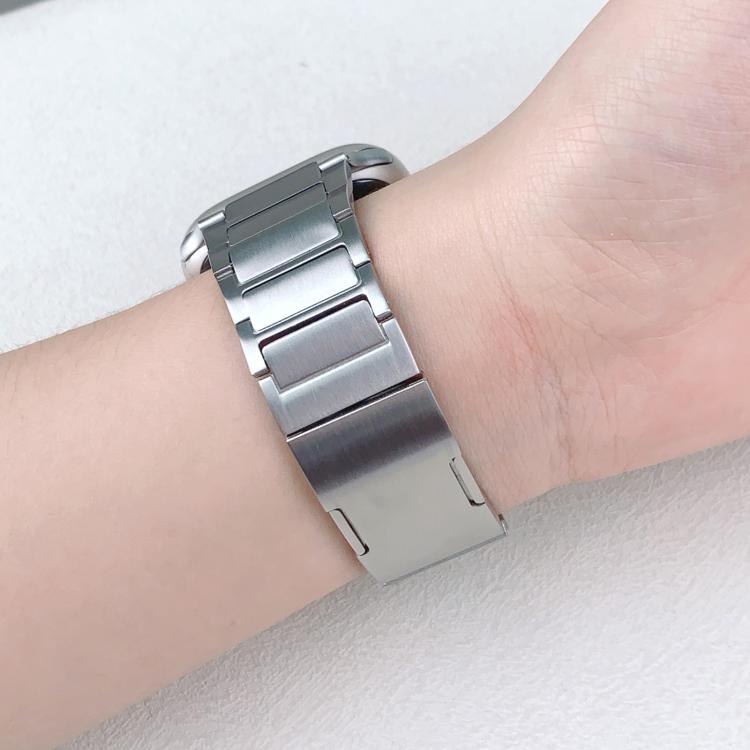 Correa de acero inoxidable con hebilla lateral desmontable y tres cuentas para Apple Watch de 42 mm, 41 mm, 40 mm y 38 mm (plateada)