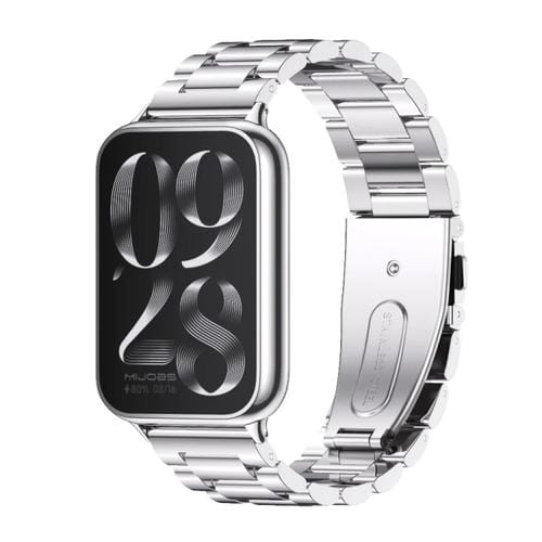 Correa de Acero Inoxidable Mijobs con Tres Cuentas para Xiaomi Smart Band 9 Pro/8 Pro (Plateada)
