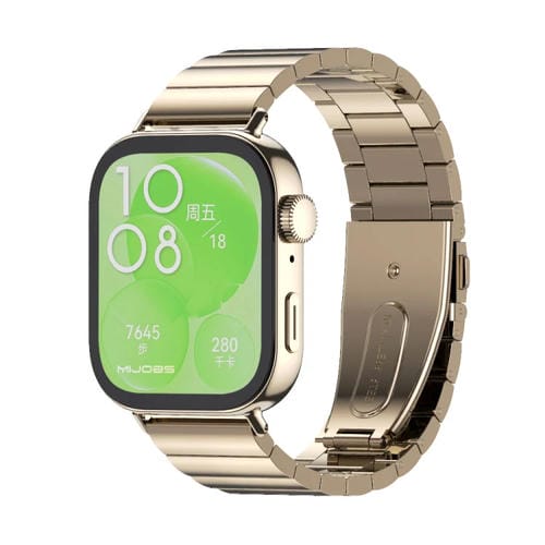 Correa de Acero Inoxidable de Bambú Mijobs para Huawei Watch Fit3 (Dorado Claro)
