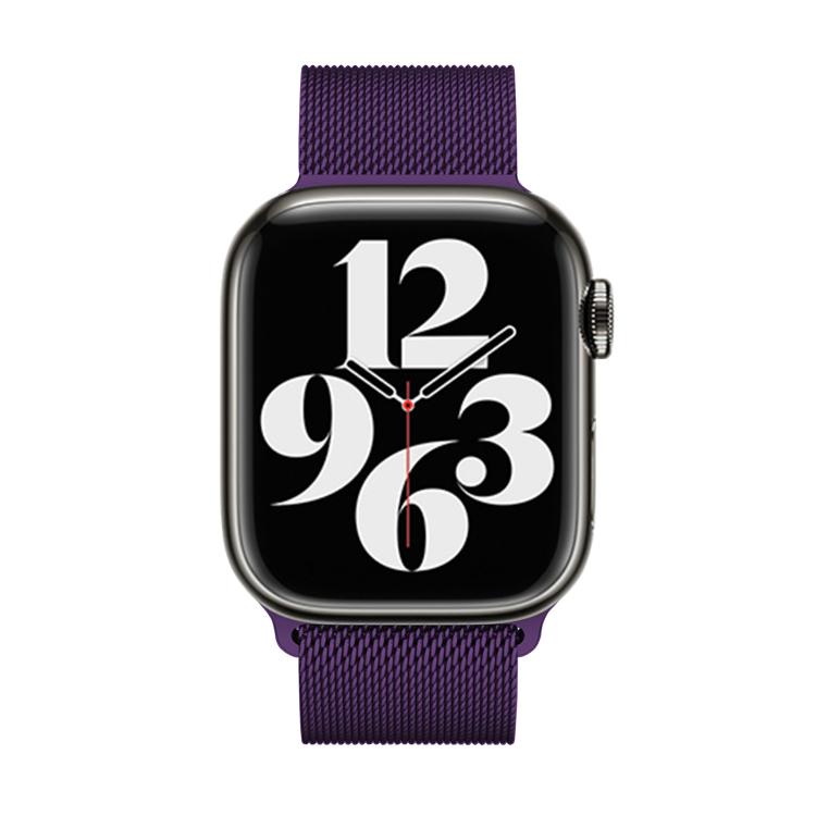 Correa de acero inoxidable milanesa con película curva 3D para Apple Watch Series 40 mm (morado)