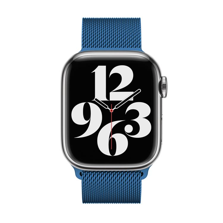 Correa de acero inoxidable milanesa con película curva 3D para Apple Watch Series 41 mm (azul)