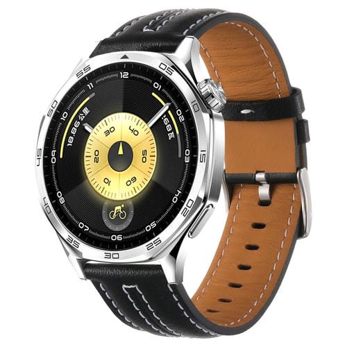 Correa de cuero con hebilla plateada para Huawei Watch GT 6 de 46 mm (negra)