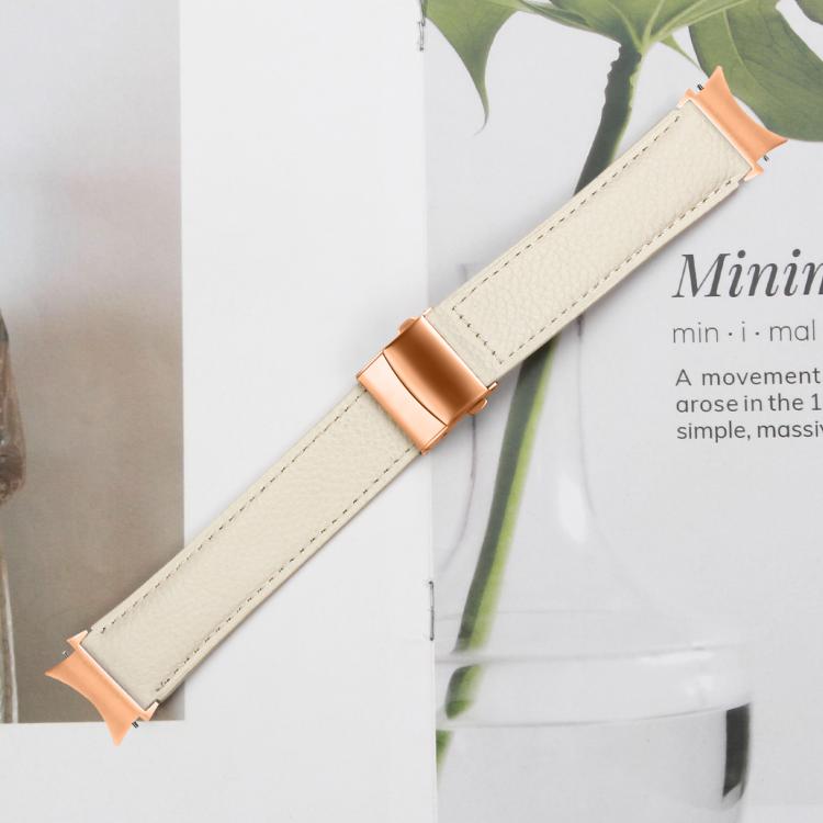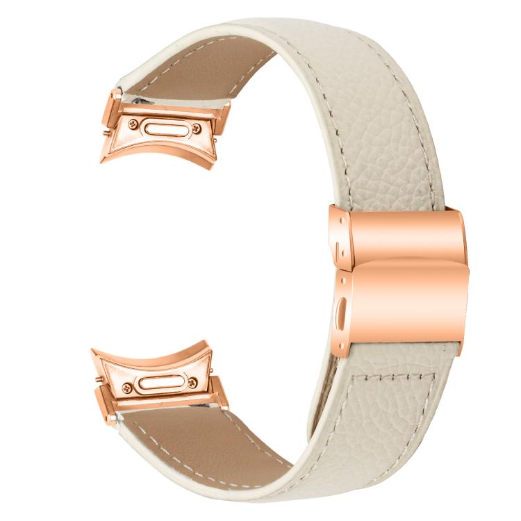Correa de cuero con hebilla trasera de tortuga en oro rosa y textura de lichi de liberación rápida para Samsung Galaxy Watch 7 de 40/44 mm (blanco cremoso)